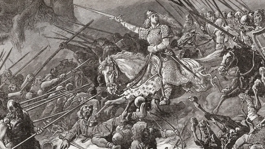 The Lady of the Mercians, also known as Aethelflaed, daughter of Alfred the Great, won the fight against the Vikings.