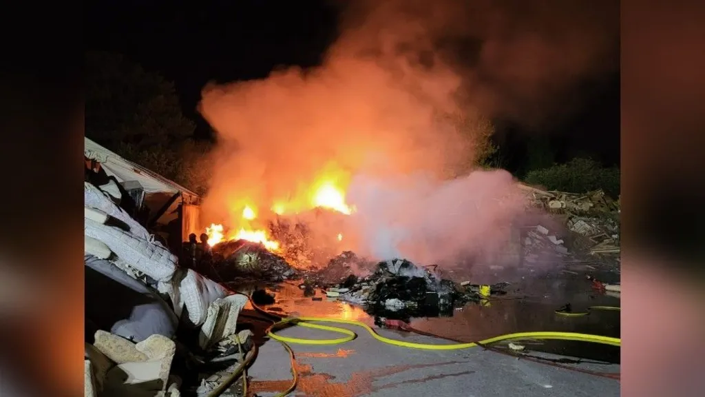 Firefighters were called to a 400-tonne pile of rubbish ablaze on Saturday night.