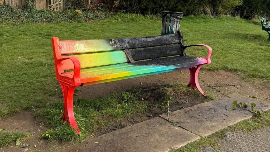 Hertfordshire Police said they are investigating a suspected arson after the North Herts Pride LGBTQ+ bench was set on fire on Windmill Hill in Hitchin.