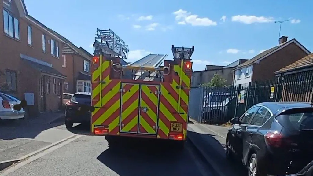 Motorists in Leicestershire are being urged to park responsibly after a fire engine got stuck driving down a narrow street.